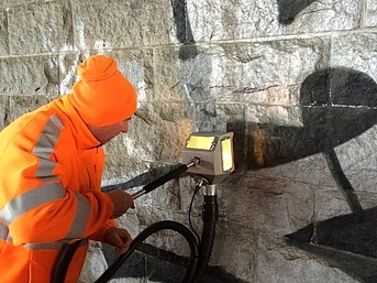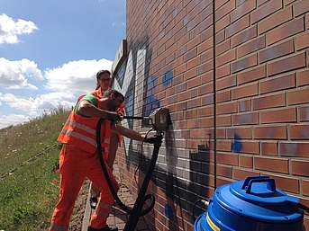 Tornado ACS temizleme makineleri, benzersiz temizleme teknolojisine sahip olup, günümüzde profesyonel grafiti kaldırması için çeşitli otoyol tamir atölyelerinde kullanılmaktadır . Temizlik makineleri ile otoparklardaki tuvalet istasyonları ve otoyol köprü duvarları temizlenir. Otoyolun köprüden kapatılması gerekli değildir ve dinlenme alanlarındaki tuvaletler temizlik sırasında kapatılmamalıdır. Minimum aşındırıcı temizlik teknolojisi yüzeye zarar vermez veya zarar vermez.