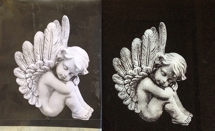 Taş ustası Bay Pempeit von Grabmale Friedrich, yıllardır oyulmuş fotoğraf gravürleri yaratmaktadır. Vakumlu kumlama teknolojisini keşfettiğinden beri, Bay Pempeit fotoğraf gravürleri yapmak için sadece Tornado ACS vakumlu kumlama makinesini kullanıyor .