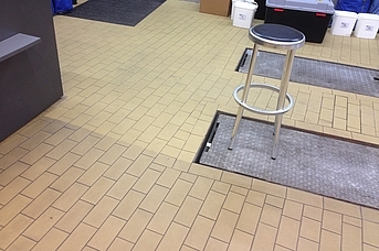 Otomobil galerilerinin atölye zeminleri ağır yüklere maruz kalır ve zaman zaman tam bir temizlik gerektirir. Fayansların temizlenmesi genellikle çok zor olur. Berlin'deki bir Porsche bayisinde, karo zemin temizliği yapılmalıdır. Geleneksel yöntemlerle, kiremitlerin temel temizliği başarılı olamamıştır.