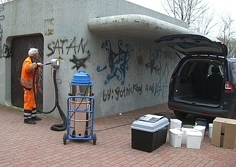 vakumlu püskürtme temizleme yöntemi, maruz kalan beton cephelerin tamamen temiz bir şekilde yenilenmesini sağlar, çünkü bu işlem ne yüksek basınç, su ne de kimyasal madde gerektirmez. Katkılanan beton yüzeylerden kirlilikler, vakumla 400 km / saate kadar hızlanan granüller vasıtasıyla giderilir. Tüm erozyon artıkları temizleme makinesinin kapalı devresinde kalır veya filtre sisteminde toplanır. İşlem tamamlandıktan sonra çevreye zarar vermeden elden çıkarma yapılabilir.