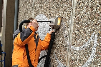 Kendiniz deneyin! Yosun, yosun, tuzlama maddesi veya egzoz gazı artıkları olsun, hatta grafiti bile devrimsel vakumlu püskürtme işlemi sayesinde kat kat tamamen kaldırılır. Tüm artıklar temizleme cihazının kapalı devresinde kalır ve ortama gelmez. Elektrikli süpürgeye benzer şekilde elden çıkarma işlemi yalnızca temizleme işleminden sonra gerçekleştirilir.