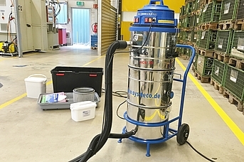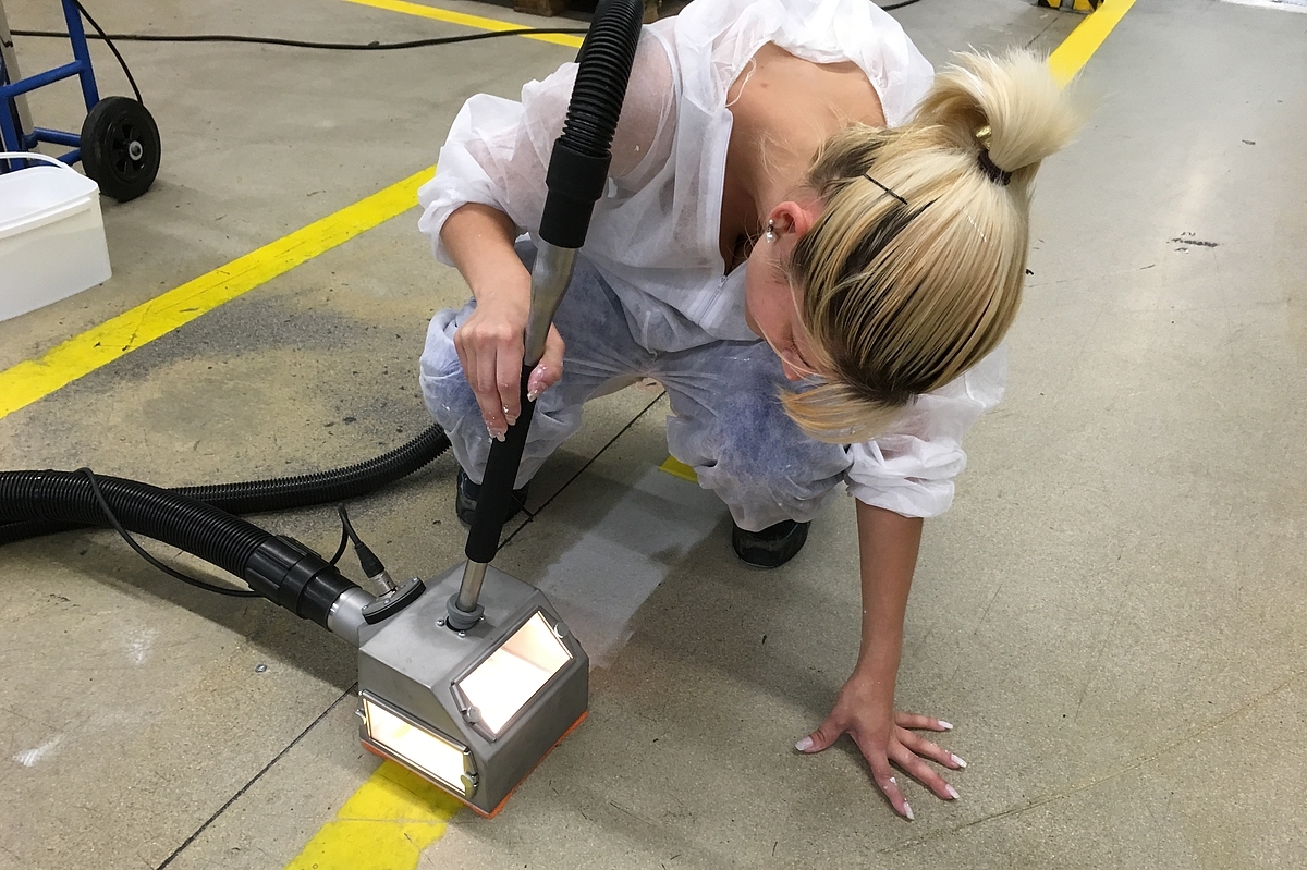 Örneğimizde, metal zemin üzerindeki zemin işaretlerinin kaldırılması gerekir. Üretim süreci kontrol edilmeden devam etmelidir. Bu sadece systeco vakumlu kumlama işlemi ile mümkündür. Yalnızca renk işaretlerinin bulunduğu alanlar çıkarılır. Entlackungsarbeiten, kendi personeliniz veya harici servis sağlayıcılar tarafından yapılabilir.